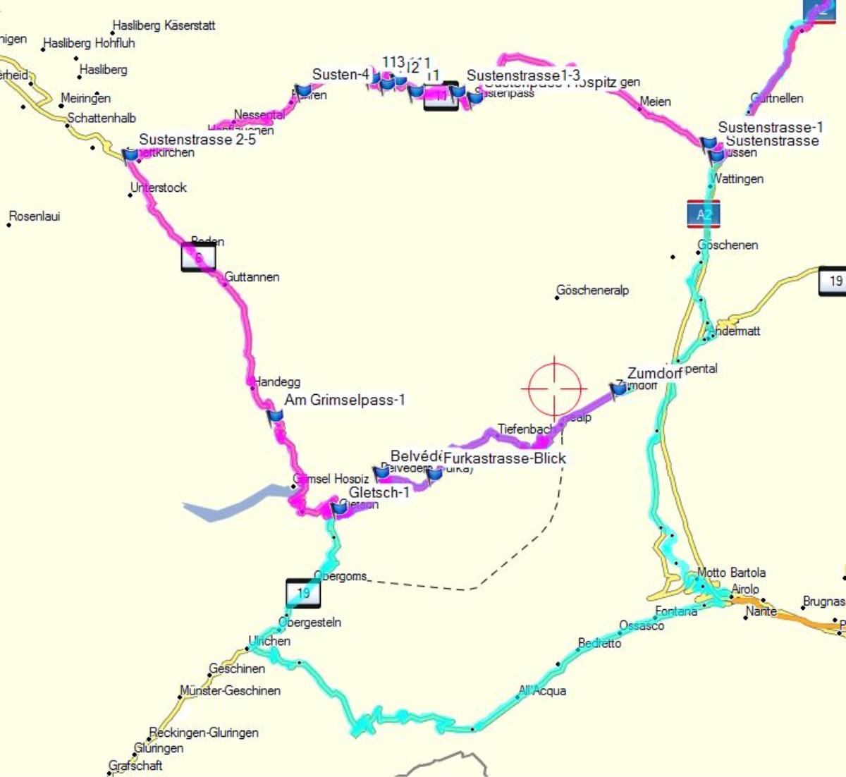 Passhöhe bessert sich das Wetter wieder und die Sonne zeigt sich, und die Temperaturanzeige zeigt bis zu 30 Grad an. In Andermatt Mittagspause und weiter geht es